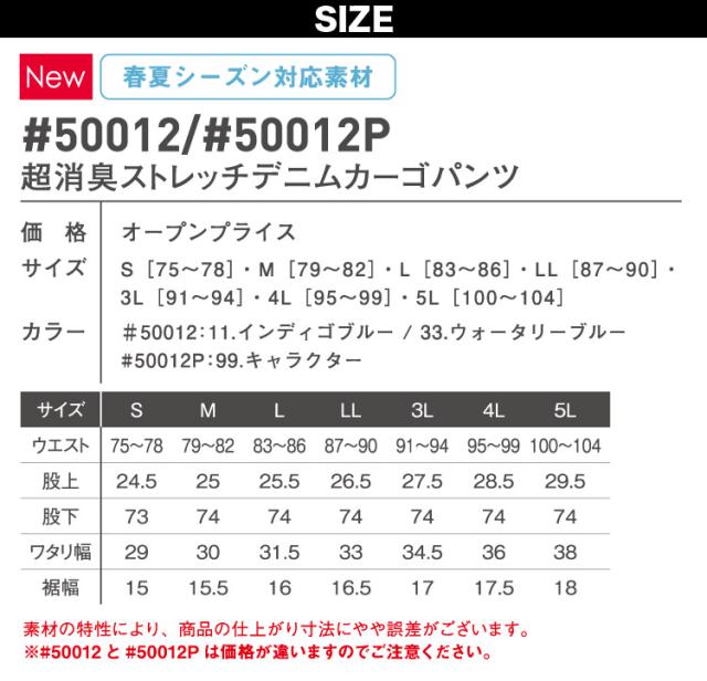 アイズフロンティア 超消臭ストレッチデニムカーゴパンツ 50012P 単品 パンツのみ ワークスーツ デニム ストレッチ 春夏 メンズ 作業服 作業着 I’Z FRONTIER