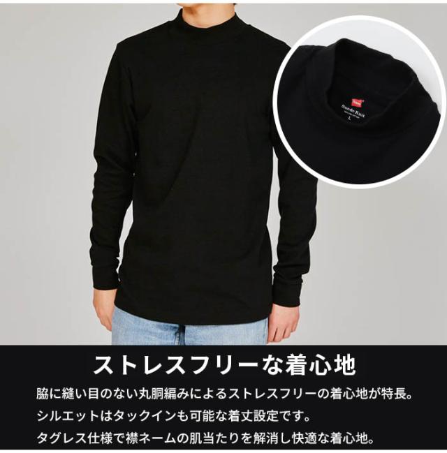 ヘインズ メンズ 長袖tシャツ ハイネック スエードニット ロングスリーブ 裏起毛 HM4-A205 ブランド タートル 首 暖かい 冬 暖 保温 Tシャツ 長袖 黒 白 インナー おすすめ 秋 冬 ブランド 綿100 売れ筋 Hanes