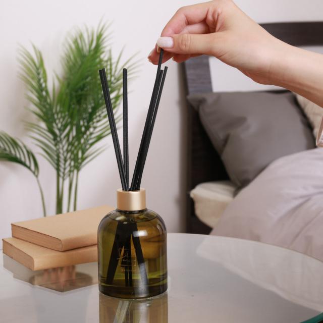 スティックが8本付属しており、差し込むスティックの本数で香りの強さを調節できます。コットン素材のスティックは、香りが早く広がり、広範囲に届くのが特徴です。