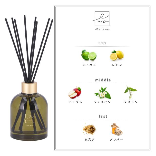 リードディフューザー LACSA ラシサ 200ml ( ディフューザー アロマディフューザー ガラス 半透明 芳香剤 箱入り パッケージ付き ルームフレグランス アロマ フレグランス 香り 寝室 玄関 おしゃれ シンプル インテリア )