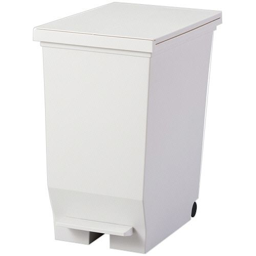 ●容量40L、色はホワイトです。●手を触れずにフタの開閉ができ、清潔なペダルオープン式のゴミ箱。●フタの中央から開く両開きタイプのため、高さの低いキッチンの下におすすめ。●背面底部にはキャスターがついており、手前に引き出すときに便利。
