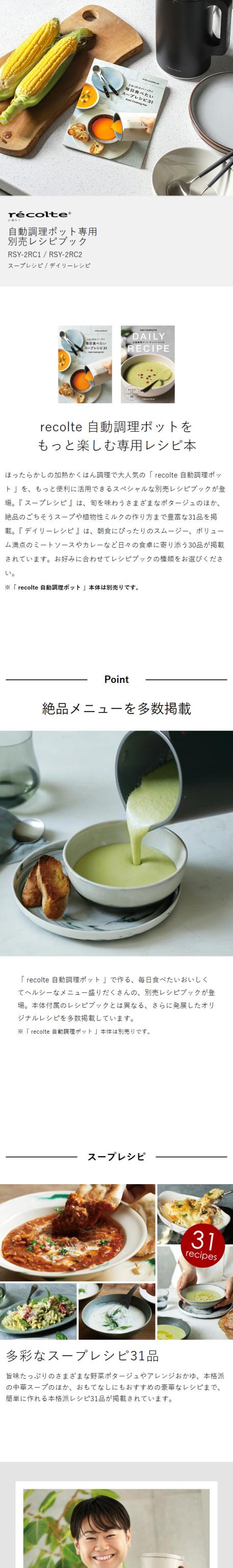 [ recolte 自動調理ポット専用 別売レシピブック ]レコルト 自動調理ポット 専用レシピ 別売り レシピブック レシピ本 料理本 スープレシピ デイリーレシピ エダジュン スムージー パスタソース ポタージュ 豆乳 シチュー 植物性ミルク RSY-2RC1 RSY-2RC2