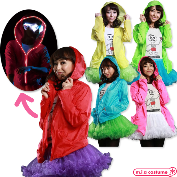1120AB■【送料無料・即納】ELEX光るパーカー 色:赤/黄/緑/水色/ピンク サイズ:Ladies レッド イエロー グリーンブルー 長袖 ジップアップ フード付き 色違い