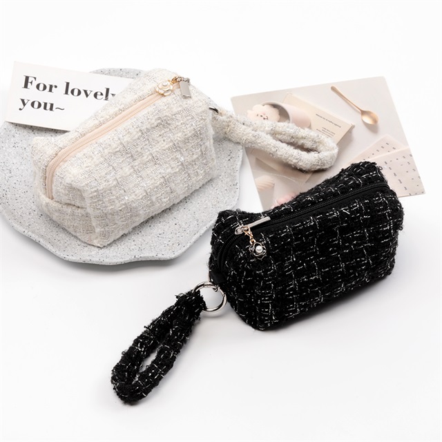 ストラップポーチ ツイード生地 ミニポーチ 小物入れ キーケース イヤホンケース 小銭入れ 約6×6×11cm (1個)