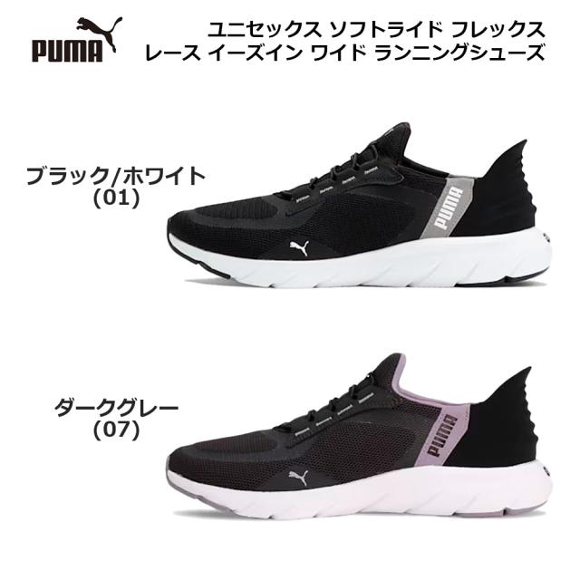 プーマ スニーカー ソフトライド フレックス レース イーズイン ワイド ランニングシューズ 309901 PUMA UNISEX SOFTRIDE FLEX LACE EASE IN WIDE RUNNING SHOES スニーカー レディース ブラック/ホワイト(01) ダークグレー(07) 22.0cm-26.0cm