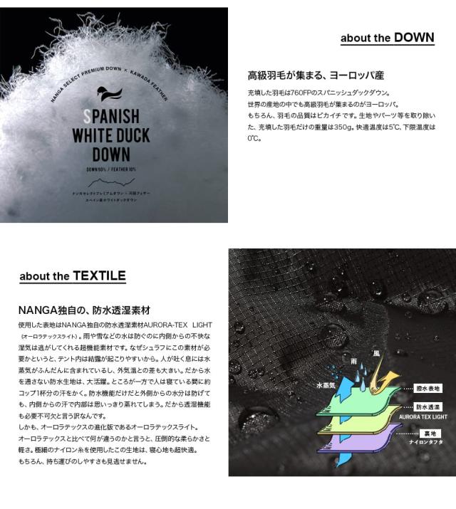 - ダウン DX:スパニッシュダックダウン90-10% (760FP) SPDX:ポーリッシュグースダウン93-7% (860FP)