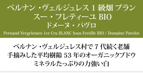 よりどり6本で送料無料 2022 ペルナン ヴェルジュレス 1級畑 ブラン スー フレティーユ BIO 750ml パヴロ 白 コク辛口 ^B0PKPF22^