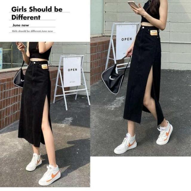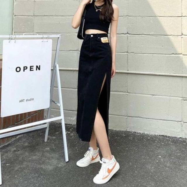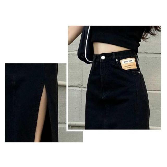 スリット スカート デニムスカート レディース ミモレ丈 ロング セクシー カジュアル ボトムス カジュアル 黒 ブリーチデニム 20代 30代 40代 50代