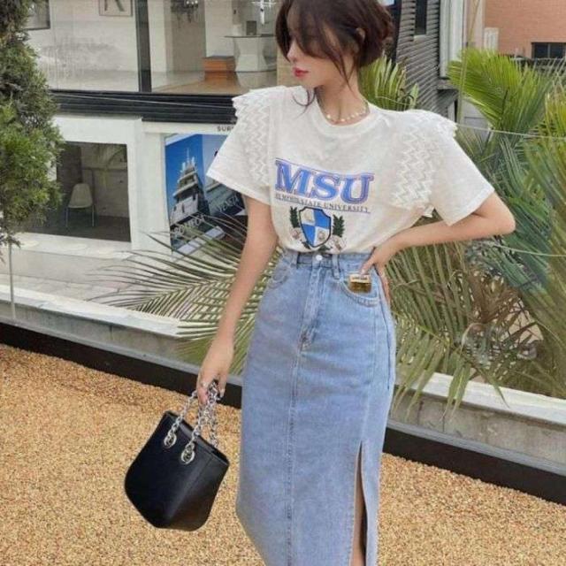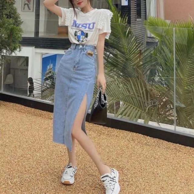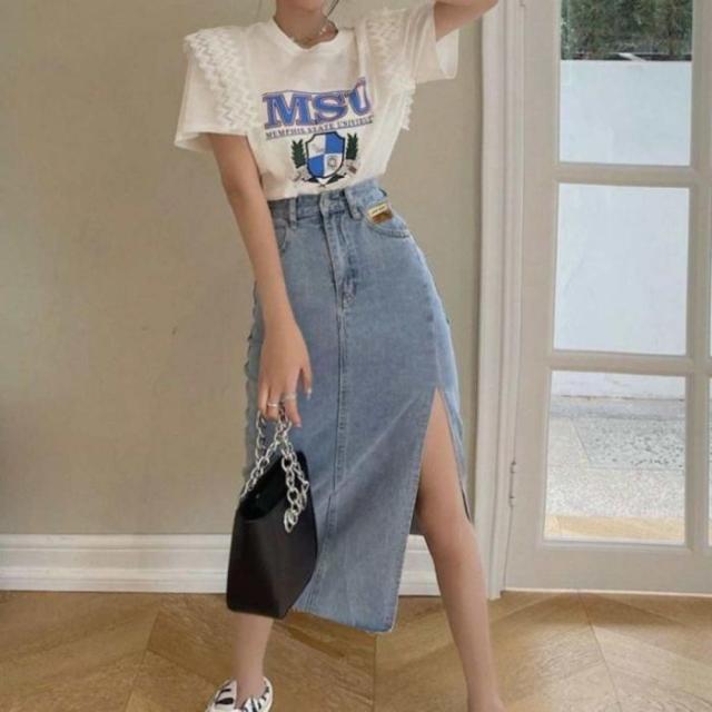 -サイドのスリットがセクシーなデニムスカート