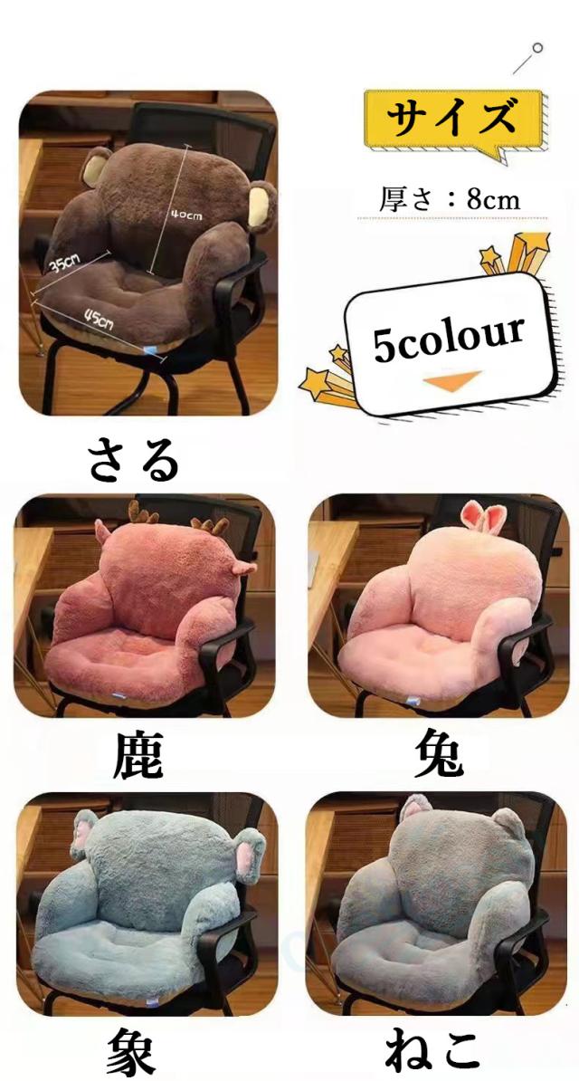 - お猿さんと鹿さんの2色購入 ズレることなく座れます。見た目も可愛い 硬い椅子に使用した場合は座面のクッション性がもう少しあるともっと良かったかなあと思い 星4つにしました。