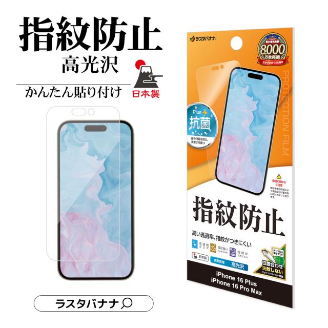 【送料無料】iPhone16 Plus 16 Pro Max iPhone15 Plus フィルム 平面保護 高光沢 高透明 クリア 指紋防止 抗菌 日本製 簡単貼り付け アイフォン 保護フィルム ラスタバナナ G4467IP467 G4510IP467P