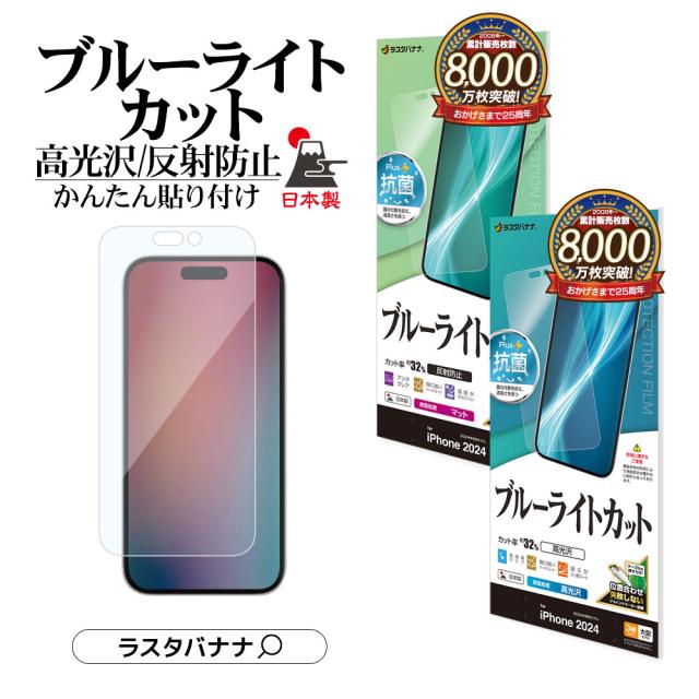 iPhone16 Pro Max フィルム 平面保護 ブルーライトカット 高光沢 透明 アンチグレア 反射防止 抗菌 日本製 貼り付けガイド ラスタバナナ
