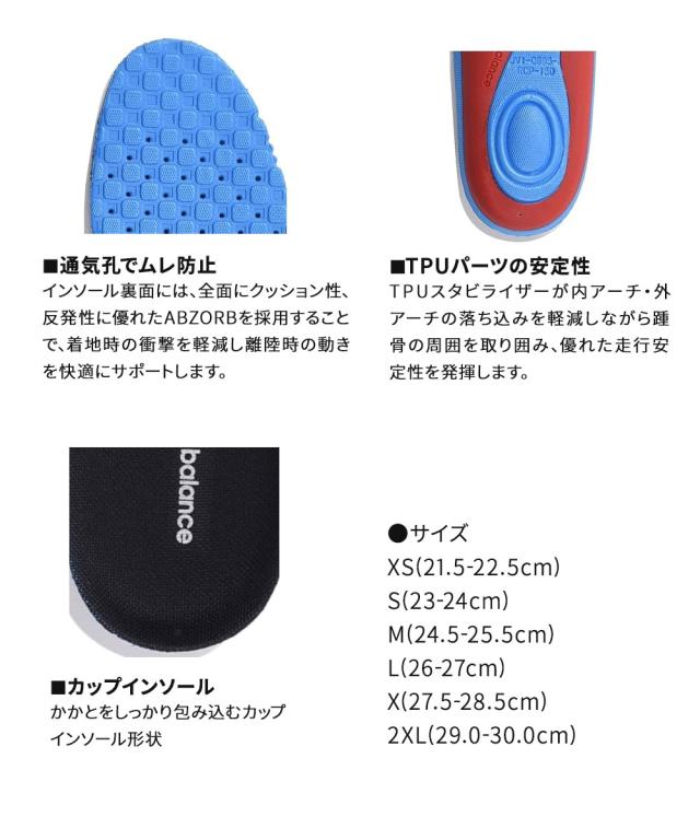 ニューバランス インソール メンズ レディース スポーツ ブランド 中敷き 衝撃吸収 クッション 通気性 ジュニア 小学生 中学生 高校生 旅行 部活 立ち仕事 疲れにくい ウォーキング ランニング サポーティブクッションインソール LAM35688