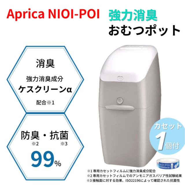 アップリカ NIOI-POI ニオイポイ グレージュ 本体 カセット1個付(1セット) 強力消臭 おむつポット ゴミ箱 ケアグッズ おむつゴミ箱 臭わない 新生児 赤ちゃん ペット