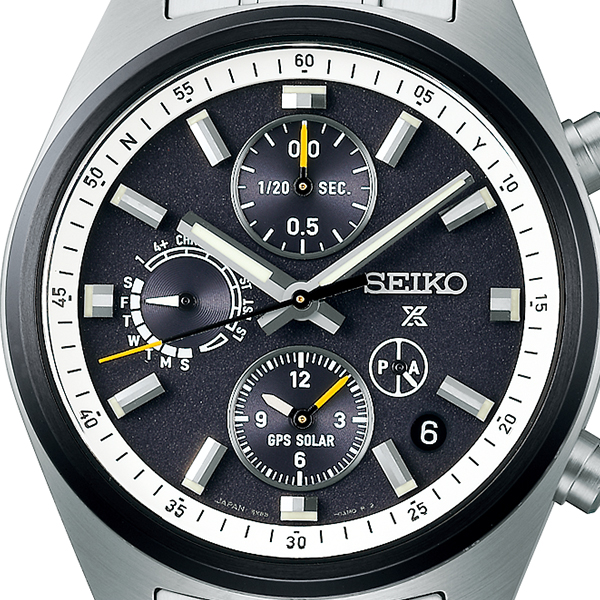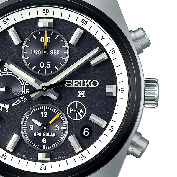 光の反射を抑えたマット仕上げのダイヤルベースが優れた「視認性」を確保しており、SEIKOの計時・計測の原点である陸上計時を象徴するSEIKOスポーツタイミングイエローを積算針に採用している点も注目ポイントです。