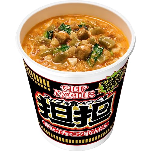 ・油揚げめん(小麦粉(国内製造)、植物油脂、食塩、糖類、しょうゆ、チキンエキス、ポークエキス、香味調味料、ポーク調味料)、(豚脂、糖類、でん粉、クミングパウダー、小麦粉、ねりごま、すりごま、ポーク調味料、香辛料(にんにく、唐辛子、花椒、しょうが、胡椒)、植物性たん白、食塩、たまねぎ、脱脂大豆粉、大豆粉末、粉末しょうゆ、ピーナッツバター、酵母エキス)、かやく(ごま、カシューナッツ、ザーサイ、味付豚ミンチ、チンゲン菜)/加工でん粉、調味料(アミノ酸等)、乳化剤、炭酸Ca、香料、かんすい、カロチノイド色素、酸味料、増粘多糖類、カラメル色素、酸化防止剤(ビタミンE)、ビタミンB2、シリコーン、くん液、ビタミンB1、(一部に小麦・卵・乳成分・落花生・カシューナッツ・ごま・大豆・鶏肉・豚肉を含む)