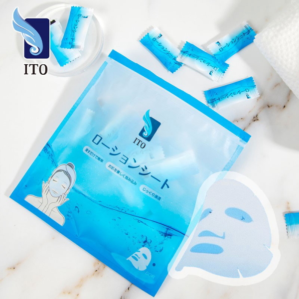 クレンジングタオルのパイオニア、ITOからローションシートマスク登場!お家でも宿泊先でも使いやすい持ち運びに便利な圧縮タイプ。圧縮した使い捨てのペーパーフェイスマスクです。普段から使用しているお気に入りの化粧水を含ませて、広げて使用します。お気に入りの化粧水を使用するマスクだから肌トラブルの心配が少なく、毎日使えます!ふんわり、柔らかくお肌にぴったりとフィットし、集中的なうるおいケアができます。