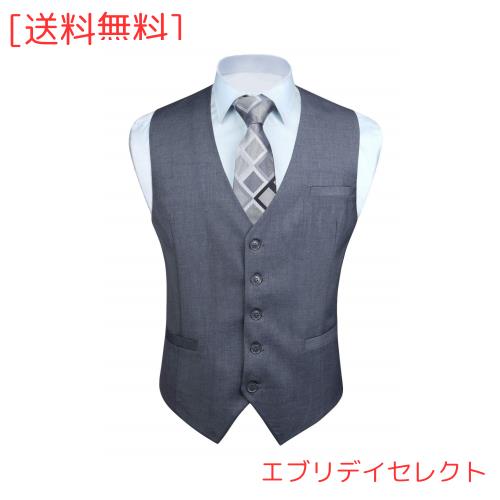 [Enlision] ビジネス スーツベスト メンズ ジレ 結婚式 チョッキ ベスト 大きいサイズ 男性 Vネック ポケット 紳士 礼服 グレー
