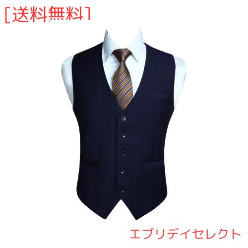 [Enlision] ビジネス ベスト 紺 メンズ スーツ ベスト フォーマル 大きいサイズ ジレベスト Vネック チョッキ 結婚式 光沢 尾錠付き 紳士