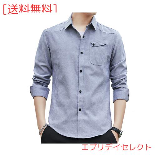 ◆商品名:[Amyni] メンズ シャツ 長袖 オックスフォードシャツ カジュアル シャツ 無地 綿 ビジネス 大きいサイズ シャツ (#4-6—麻グレー, L)