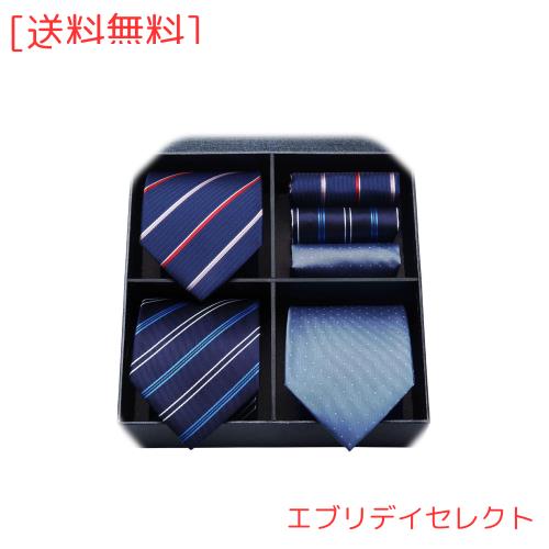 [HISDERN] ビジネス用 ネクタイ 3本セット 結婚式 青 ネクタイ チーフ フォーマル メンズ ネクタイ 就活 紺 礼服 ネクタイ おしゃれ ブラ
