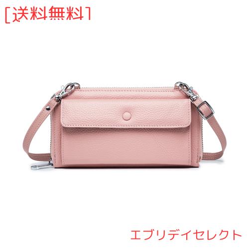 [imeetu] スマホショルダー スマホポーチ レディース ミニショルダーバッグ 長財布 本革 おしゃれ 斜め掛け 肩掛け(ピンク)