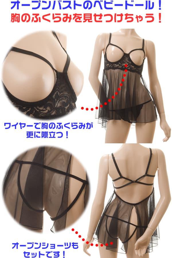 ●商品名:見せちゃいます!ワイヤー入 オープンバストのベビードール 2366