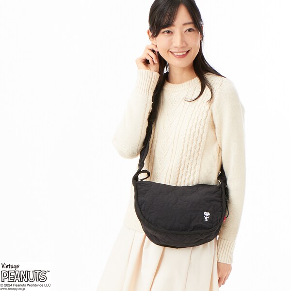 軽くてふんわり。触り心地の良いキルティングショルダーバッグです。キルティングの形がスヌーピーシルエットなのは隠れポイントです。