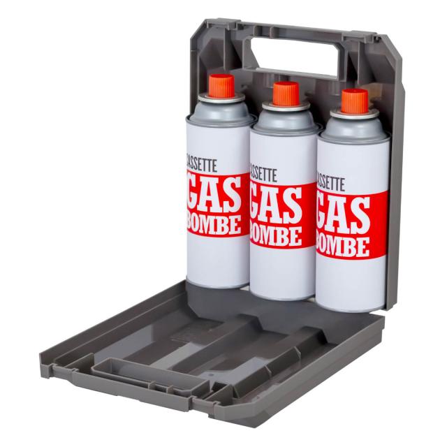 ●持ち運びに便利で、カセットボンベが3本まで収納できるケースです。