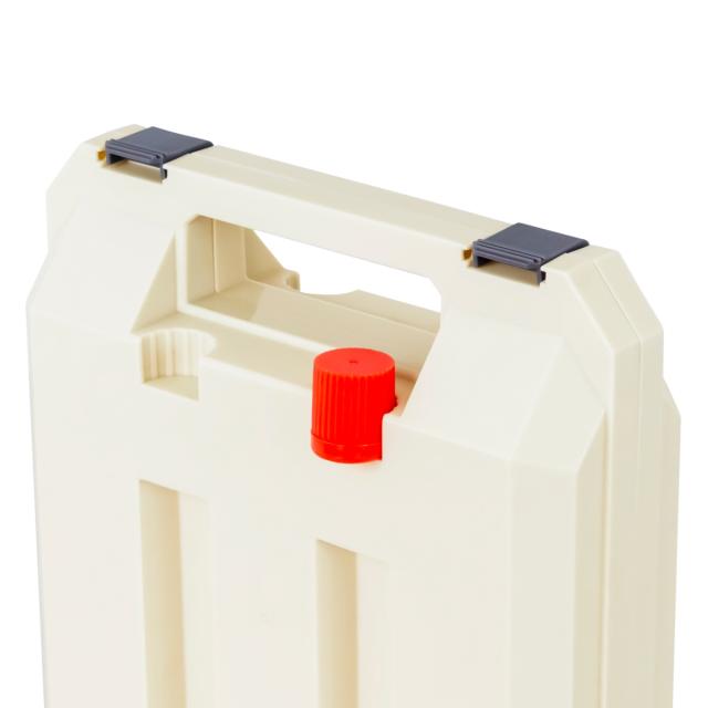 キャップホルダー付きで、カセットボンベを使って再びしまう際にキャップの紛失を防止します。また上部にロックが2ヵ所付いているので、しっかりケースを留められます。
