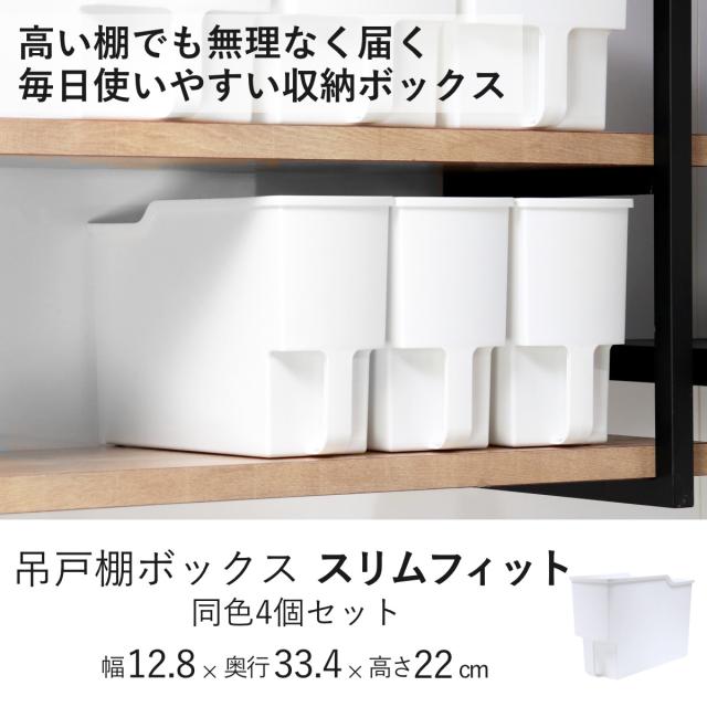 キッチン収納ケース 吊り戸棚ボックス スリムフィット 幅12.8cm 4個セット ( スリム キッチンストッカー 取っ手付き 吊戸棚 ケース 吊戸棚ボックス 吊り戸棚ストッカー 吊戸棚収納 戸棚収納 収納BOX 吊り戸棚 キッチン 収納 )