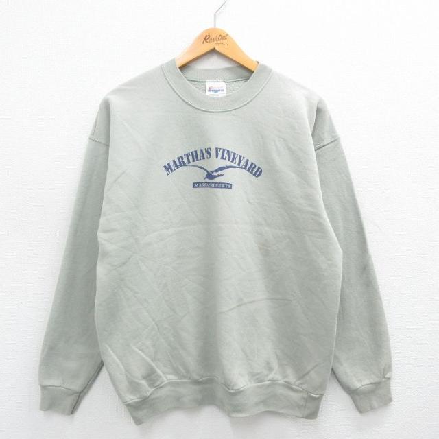 【商品名】 L★古着 ヘインズ 長袖 スウェット メンズ 00年代 00s 鳥 フットボール サンフォードフリッチ クルーネック 青