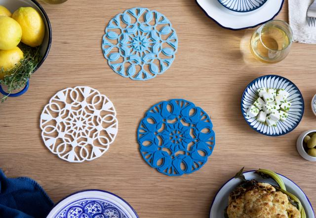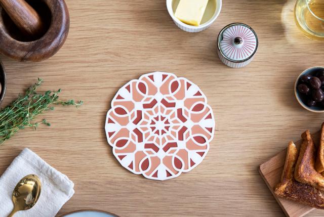 3枚組み合わさって美しい柄になる鍋敷き