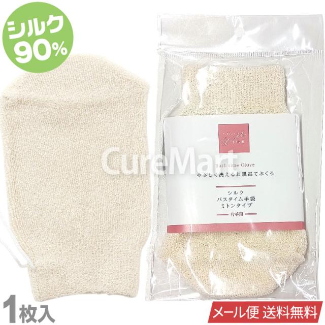 シルク バスタイム手袋 ミトンタイプ シルク90% オフホワイト 2573 withsilk メール便送料無料 シルク ボディウォッシュミトン お風呂 体洗う 絹 ボディタオル 垢こすり あかすり ミトン手袋 角質 取り 砂山 SUNAYAMA