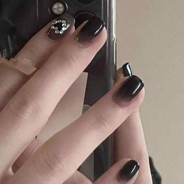 ネイルチップ 黒 ロング 韓国 ネイルチップ 地雷系 ギャル付け爪 量産型 キラキラ 蝶々 星月 ハート猫目石 ャッツアデザイン ラインストーン (A)