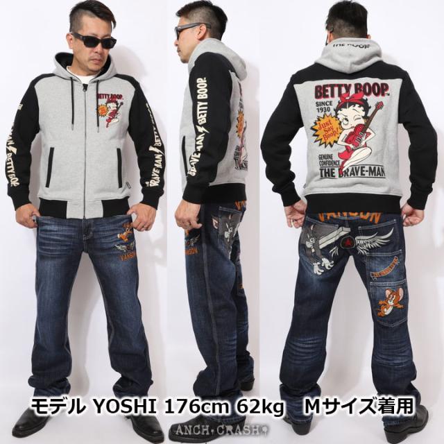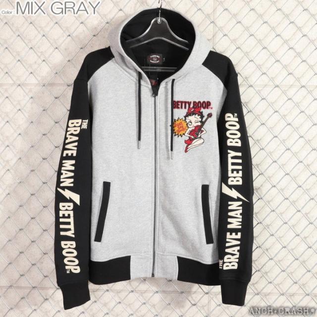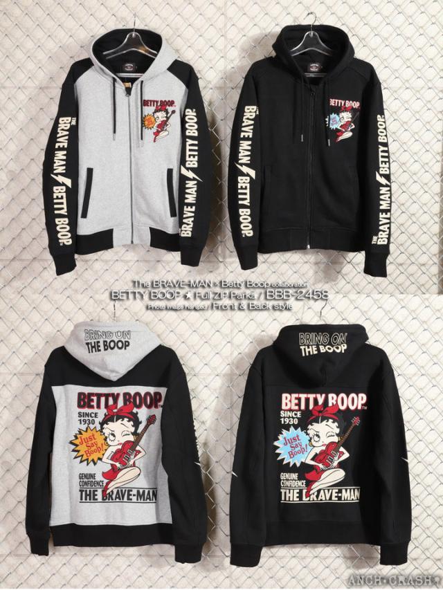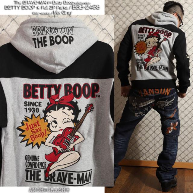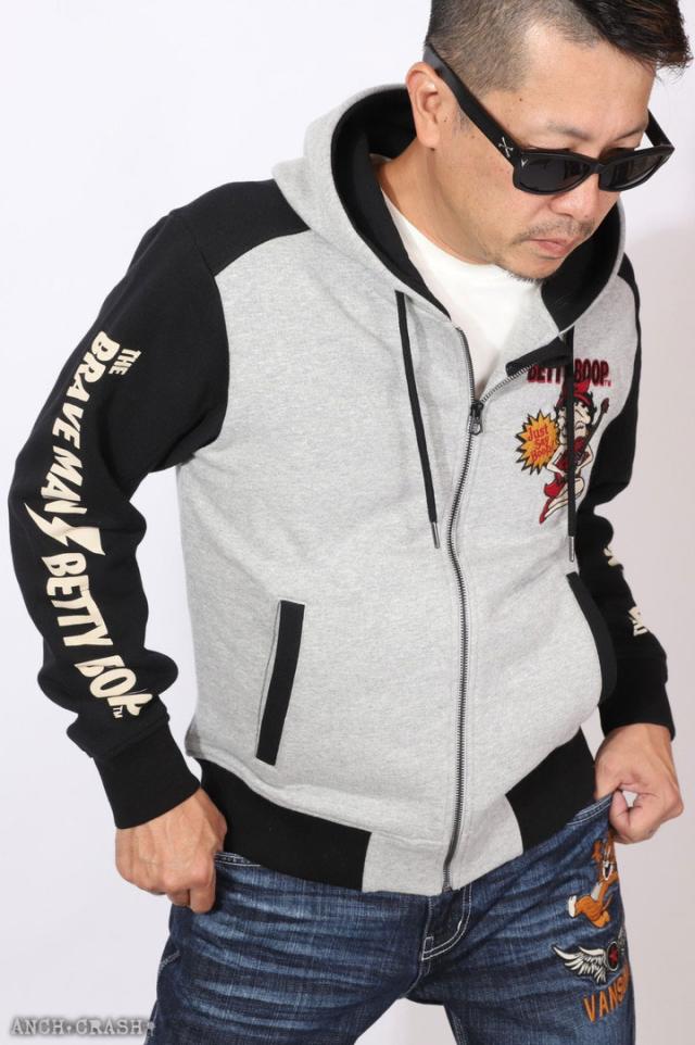 The BRAVE-MAN ベティブープ 裏毛 ZIP パーカー (BBB-2458)【送料無料】ブレイブマン BETTY BOOP 刺繍