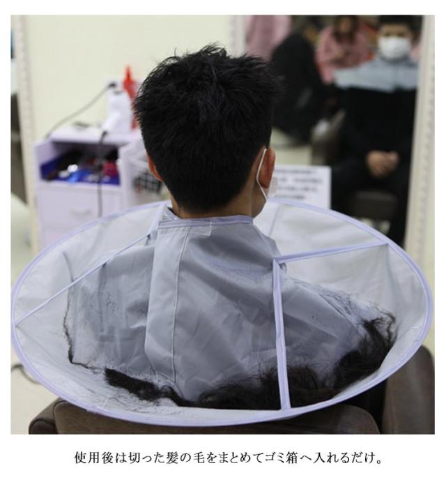 | 散髪時に髪の毛をキャッチしてくれる散髪用ケープです。 被るだけで、簡単に髪の毛をキャッチ。 お子様から大人の方まで自宅カットで重宝します。 使用後は切った髪の毛をまとめてゴミ箱へ入れるだけ。 コンパクトに折りたたんで収納できて便利。 毛染めにも使えますよ。 | |