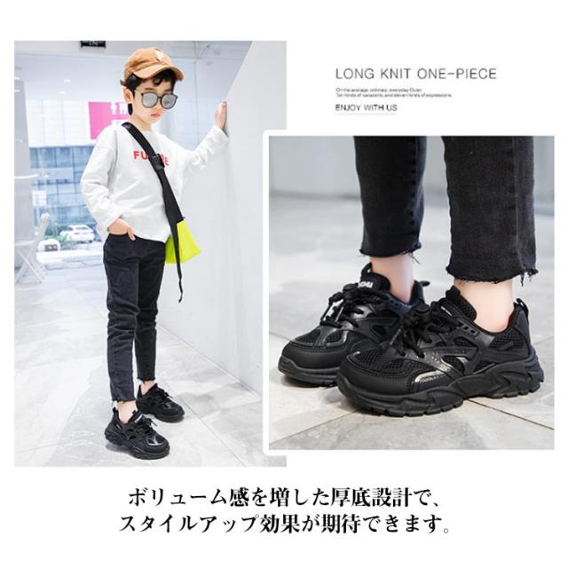 | 結ばない・ほどけない靴紐!キッズ向けダッドシューズです。 ボリューム感を増した厚底設計で、スタイルアップ効果が期待できます。 アッパーは伸縮性のあるメッシュ素材で足にやさしくフィットし、すぐに脱げてしまう心配なし。 シューズの先部分の広い空間は足の指の動きをスムーズにできるようにし、成長発育と認知発達によい。 柔らかくて伸展性が良い、適当な通気性能を持ち、全体が軽くて滑りにくい、スニーカーとしは最適です。 | |