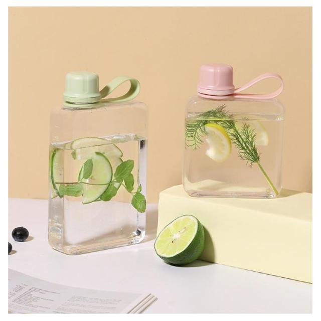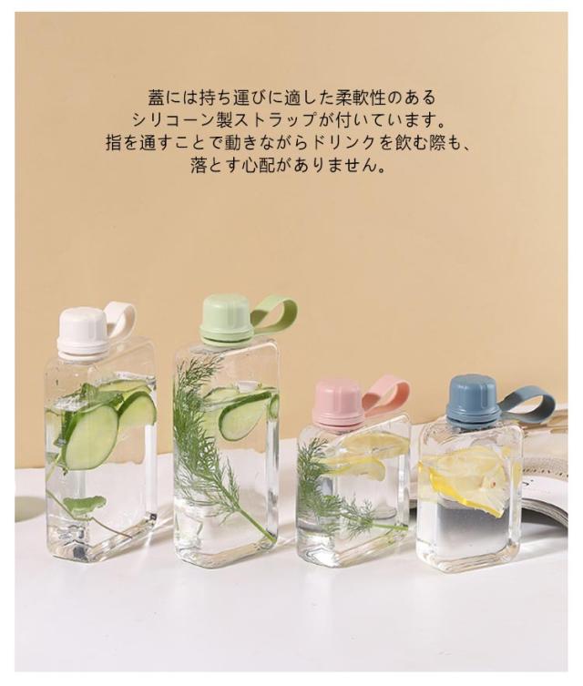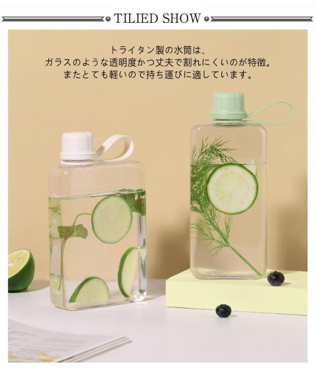 | BPAフリーのトライタン製の水筒!ポケットに入れて持ち歩けるスクエアボトルです。 トライタン製の水筒は、ガラスのような透明度かつ丈夫で割れにくいのが特徴。またとても軽いので持ち運びに適しています。 薄型タイプなのでバッグに入れてもかさばることなく、持ち運びができます。出勤や登校時、ちょっとしたおでかけやお散歩時に便利な飲みきりサイズになっております。 蓋には持ち運びに適した柔軟性のあるシリコーン製ストラップが付いています。指を通すことで動きながらドリンクを飲む際も、落とす心配がありません。 | |