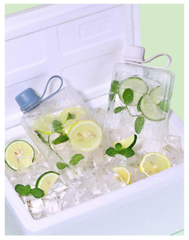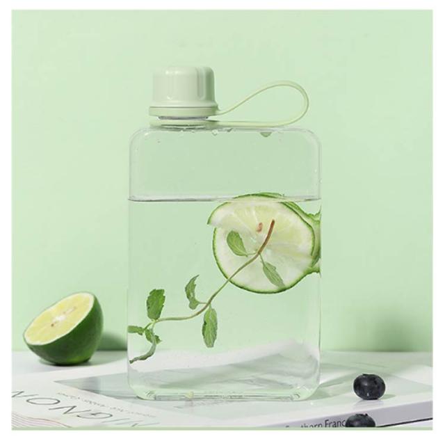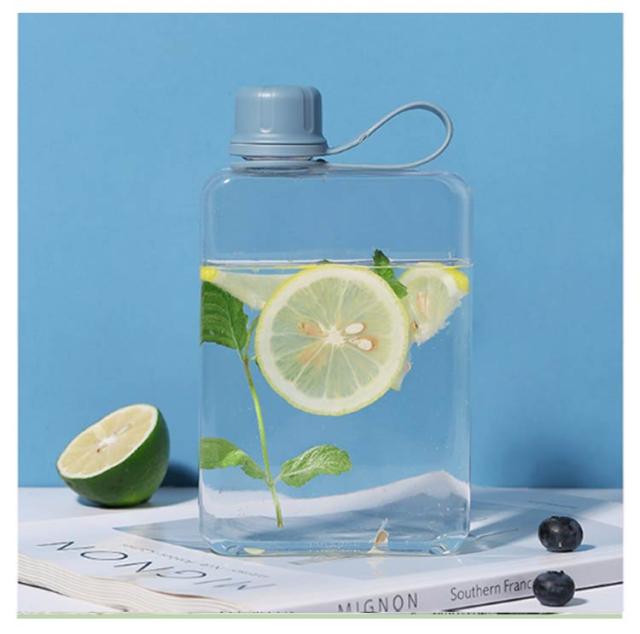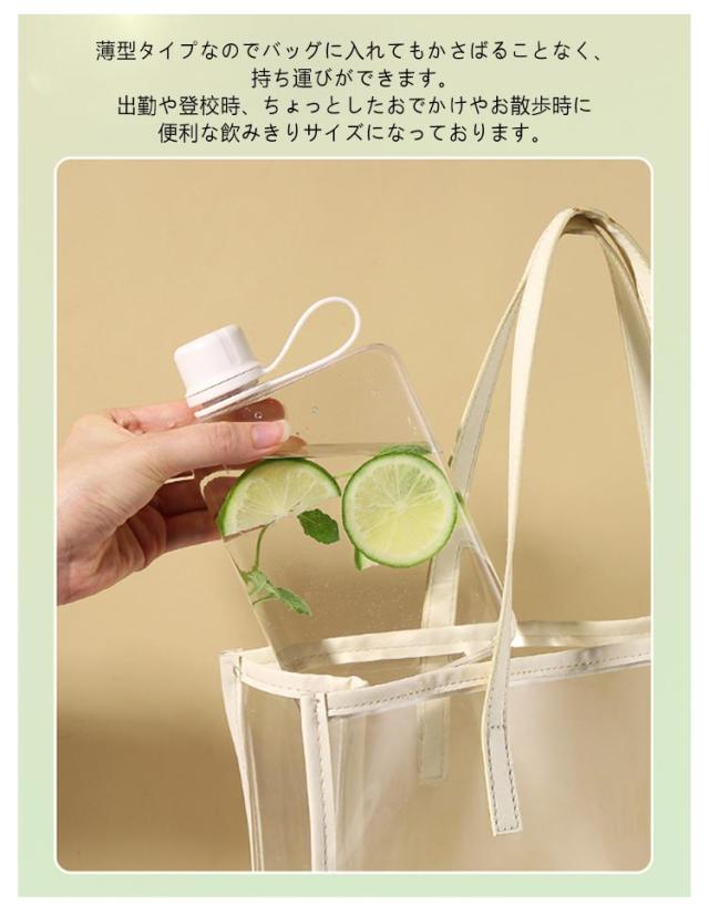 水筒 超薄型 BPAフリー トライタン製 ボトル スクエアボトル 四角 おしゃれ ウォーターボトル 大容量 クリアボトル 持ち運び 軽量 スリム 透明 薄型 ボトル 水分補給 目盛り付き 直飲み 蓋付き お弁当 学校 キャンプ 運動 登山 携帯 ストラップ付 送料無料