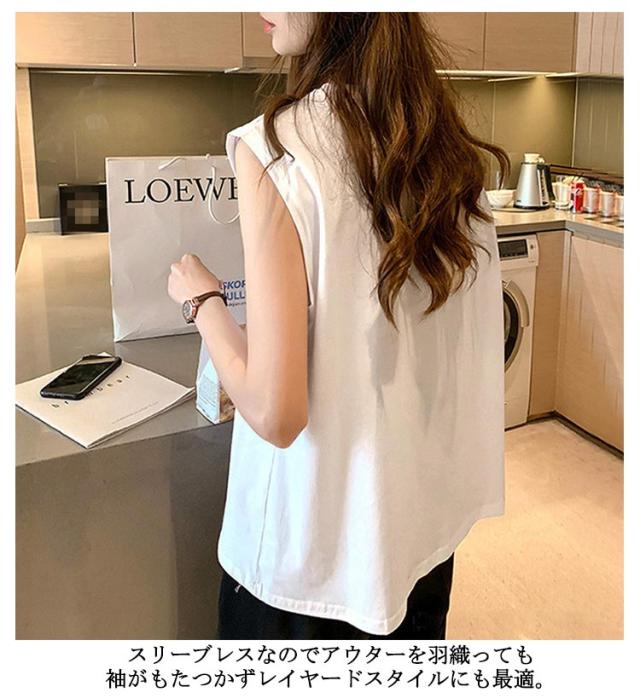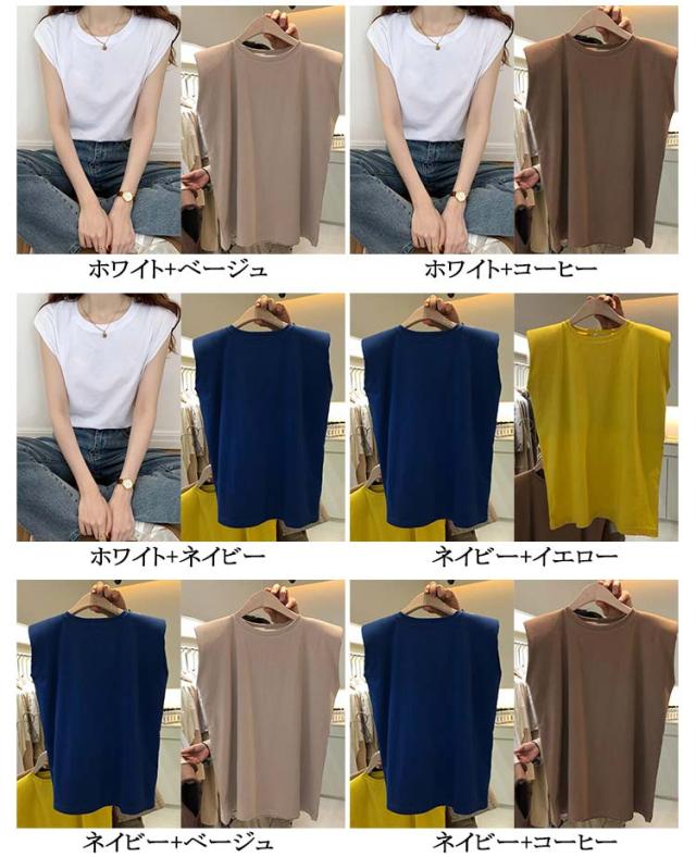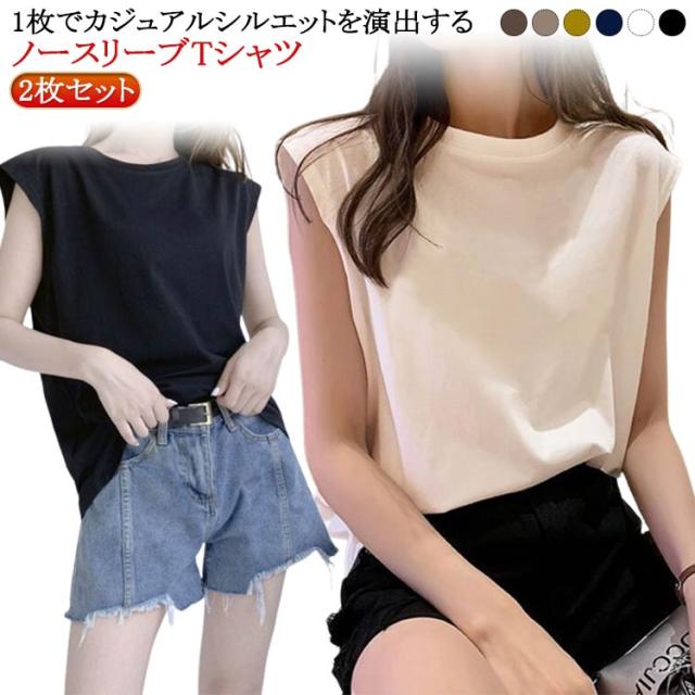 2枚セット!ノースリーブtシャツ レディース ノースリーブ トップス ノースリーブティーシャツ 薄手 おしゃれ きれいめ タンクトップ クルーネック Tシャツ トップス 夏 シンプル おしゃれ スリーブレス 無地 シンプル トップス 重ね着 オフィス カジュアル 通勤 tシャツ