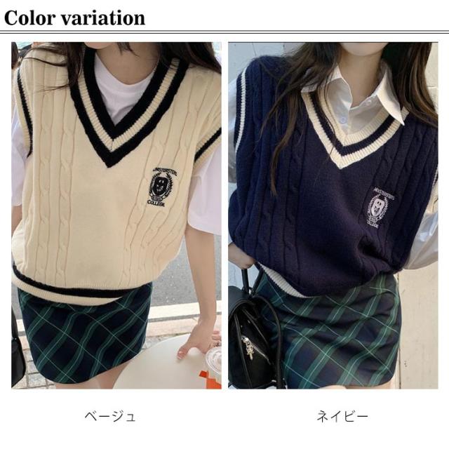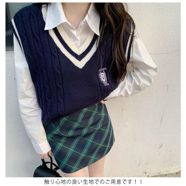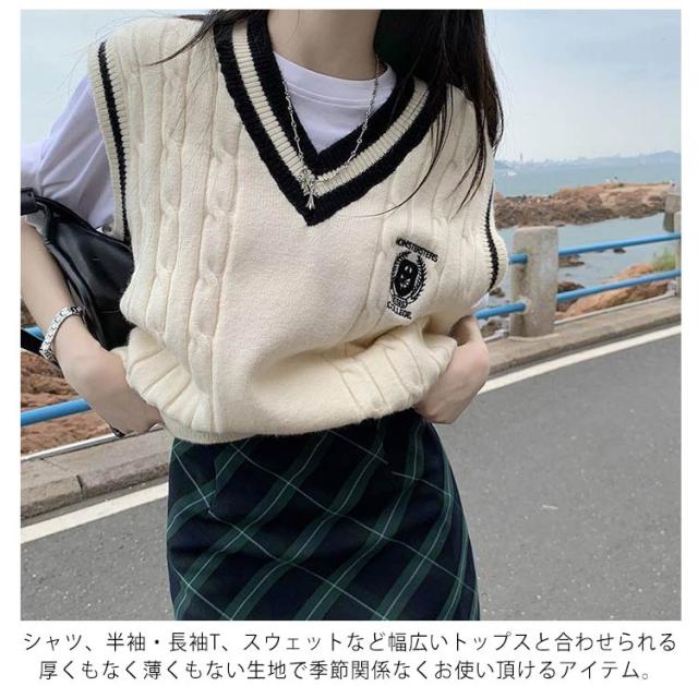 | 制服に合わせやすいライン入りVネックのベスト 普段遣いも出来る万能アイテム! シャツ、半袖・長袖T、スウェットなど幅広いトップスと合わせられる厚くもなく薄くもない生地で季節関係なくお使い頂けるアイテム。 ケーブル編み柄の目が立体的に立ちきれいに仕上がります。 ネックと裾のラインがアクセントになって着映えします◎ 触り心地の良い生地でのご用意です!! | |