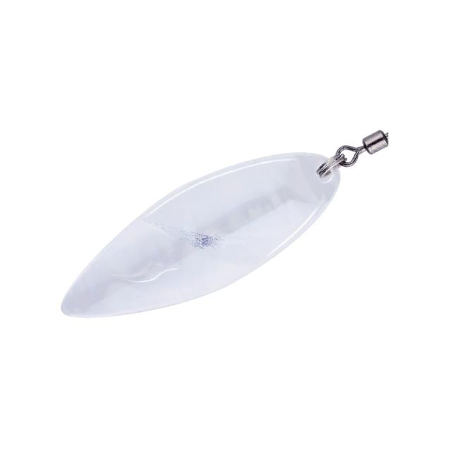 Juicy(ジューシー)の特長は従来の金属性のブレードには無い透明感と軽さである。透明であることで、光の透過と反射でナチュラルにアピールすることができる。