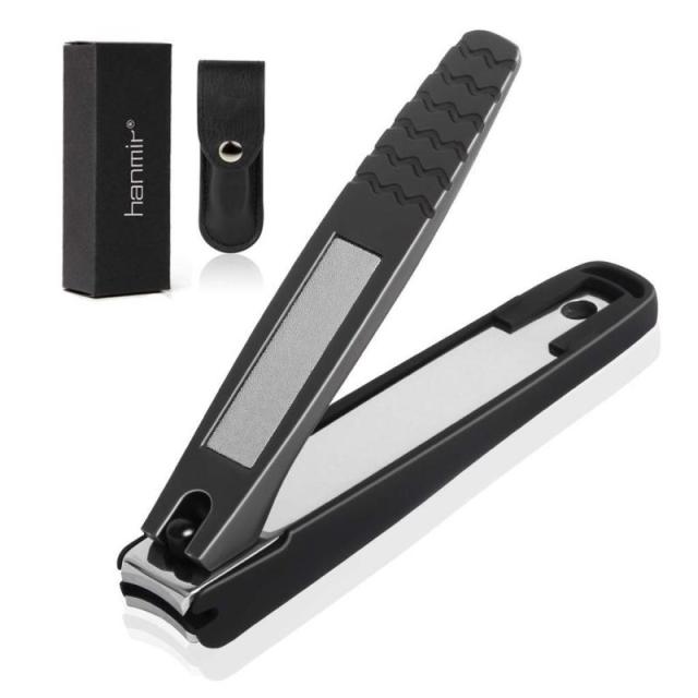hanmir Hanmir 爪切り 飛び散り防止 錆びない 切れ味 ヤスリ付き 手足両用 各種爪に レザー収納袋付き ギフト 1個 (x 1) ブラック