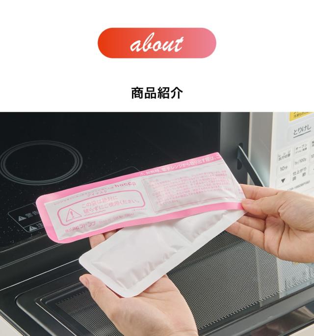家庭用電子レンジで500W、600Wともに15秒チンするだけですぐホカホカに。レンジから取り出して、約10分間温かさが持続します(室温や使用環境により持続時間は異なります)。温めたいと思った時すぐに温められるので、スマホやパソコンで駆使した目元をほぐす毎日の習慣におすすめです。