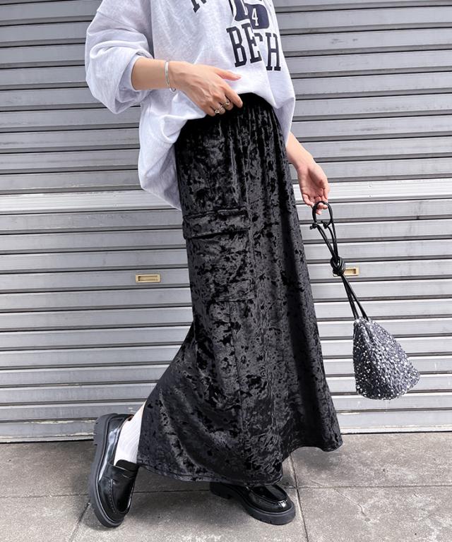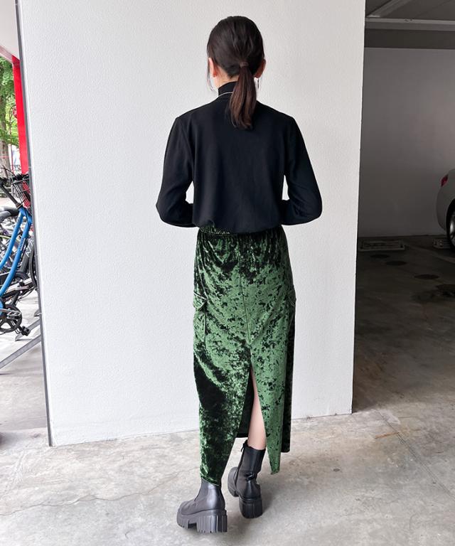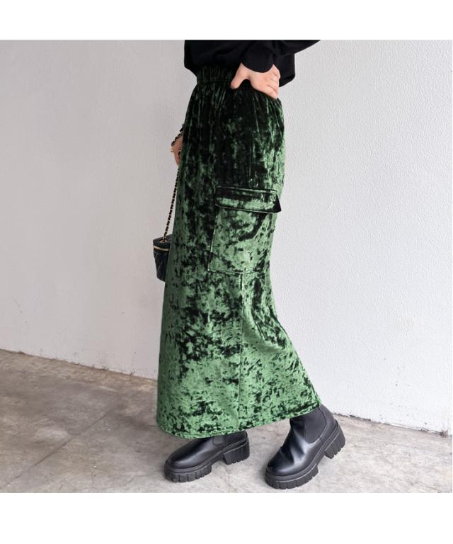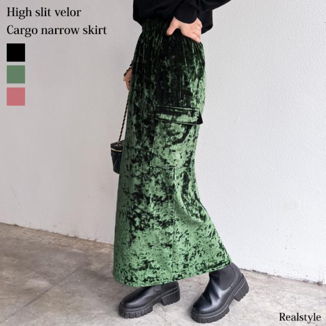 新作 スカート レディース タイトスカート ナロースカート ロング丈 ベロア カーゴ きれいめ 秋 冬 シンプル 上品 スリット 膝下 おしゃれ