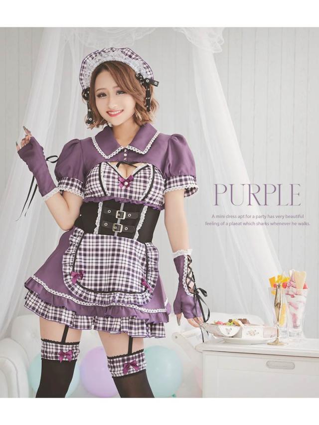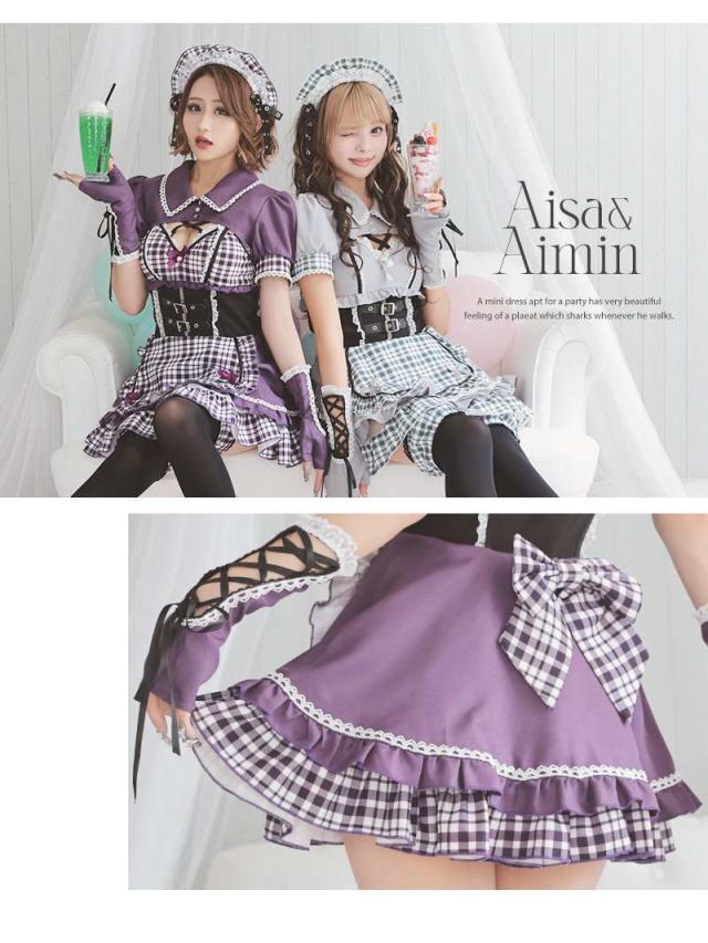 キャバコスプレ Ryuyu チェック柄 メイド服 メイド 制服 男ウケ コスプレ 衣装 コスプレ衣装 ハロウィン ハロウィンコ