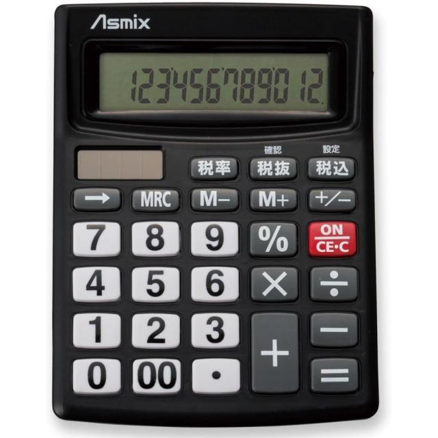 ○税計算ができる12桁表示電卓。仕事場に最適なビジネス電卓です