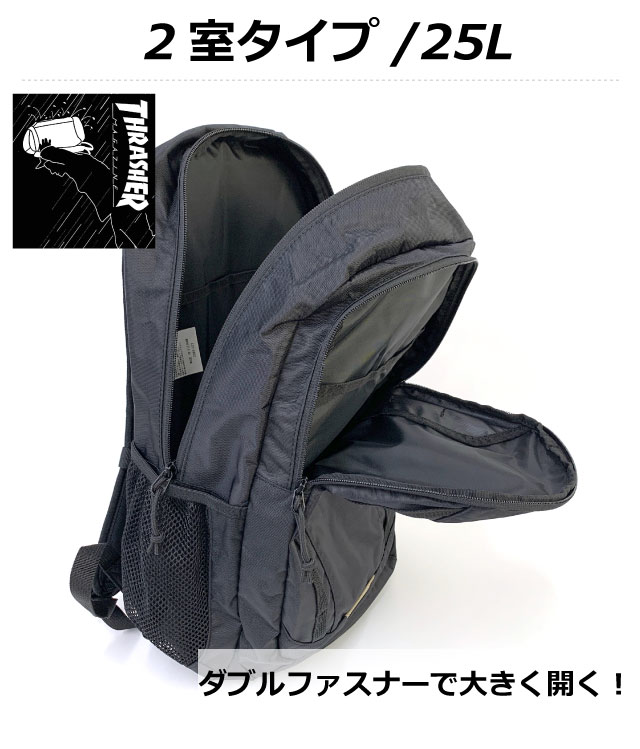 リュック 通学 男子 高校 THRASHER スラッシャー リュックサック 25L 撥水加工 thr-283 ストリートブランド 通学リュック 中学 撥水 大学生 大容量 黒 丈夫 おしゃれ 通学リュック 通学用 部活 サブバッグ スポーツ a4 人気 入学 新学期 修学旅行 林間学校 ゴールド 白