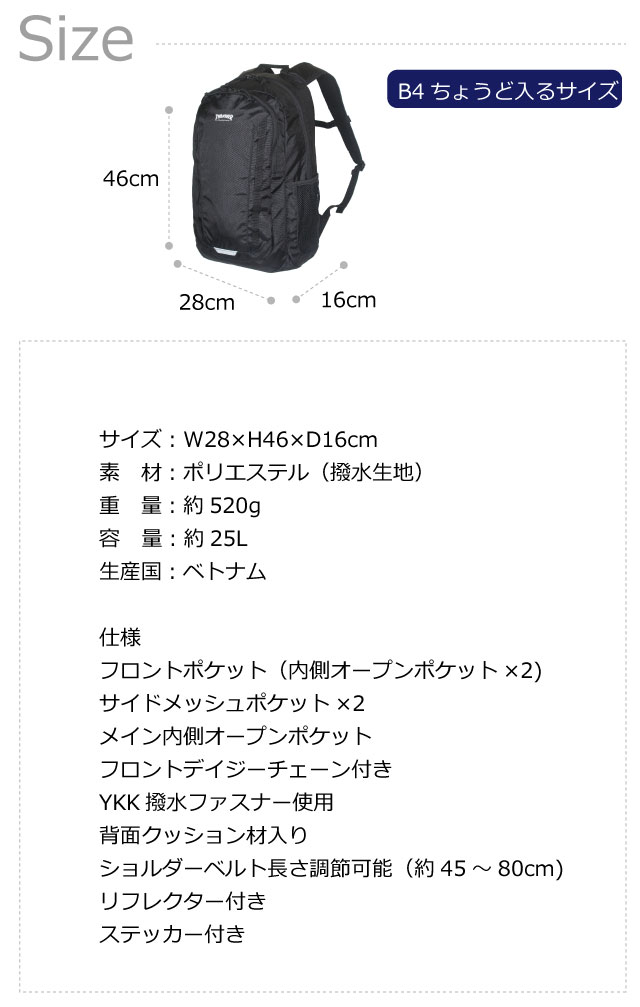 ![]() ![]() ![]() ![]() ![]() ![]() ![]() ![]() ![]() ・THRASHER スラッシャー 世界中のスケーターから人気のあるブランドスラッシャーからリュックサック登場。大人も持てるデザインが人気。 容量は25Lで収納力抜群。開口部はダブルファスナー開閉式で大きく開くので荷物の出し入れもスムーズです。 メインルームはA4サイズが収まる大容量サイズ。 教科書や参考書など必要な物はしっかり収まるので毎日の通勤通学や、ちょっとした旅行にもピッタリです。 内外には豊富なポケットつきで小物の収納には困りません。 リフレクター付きで夜道も安心です。 部活動やサークルなどで荷物が多い学生を始め、男女問わず、毎日の通勤、休日、レジャーなど幅広く活躍するアイテムです。